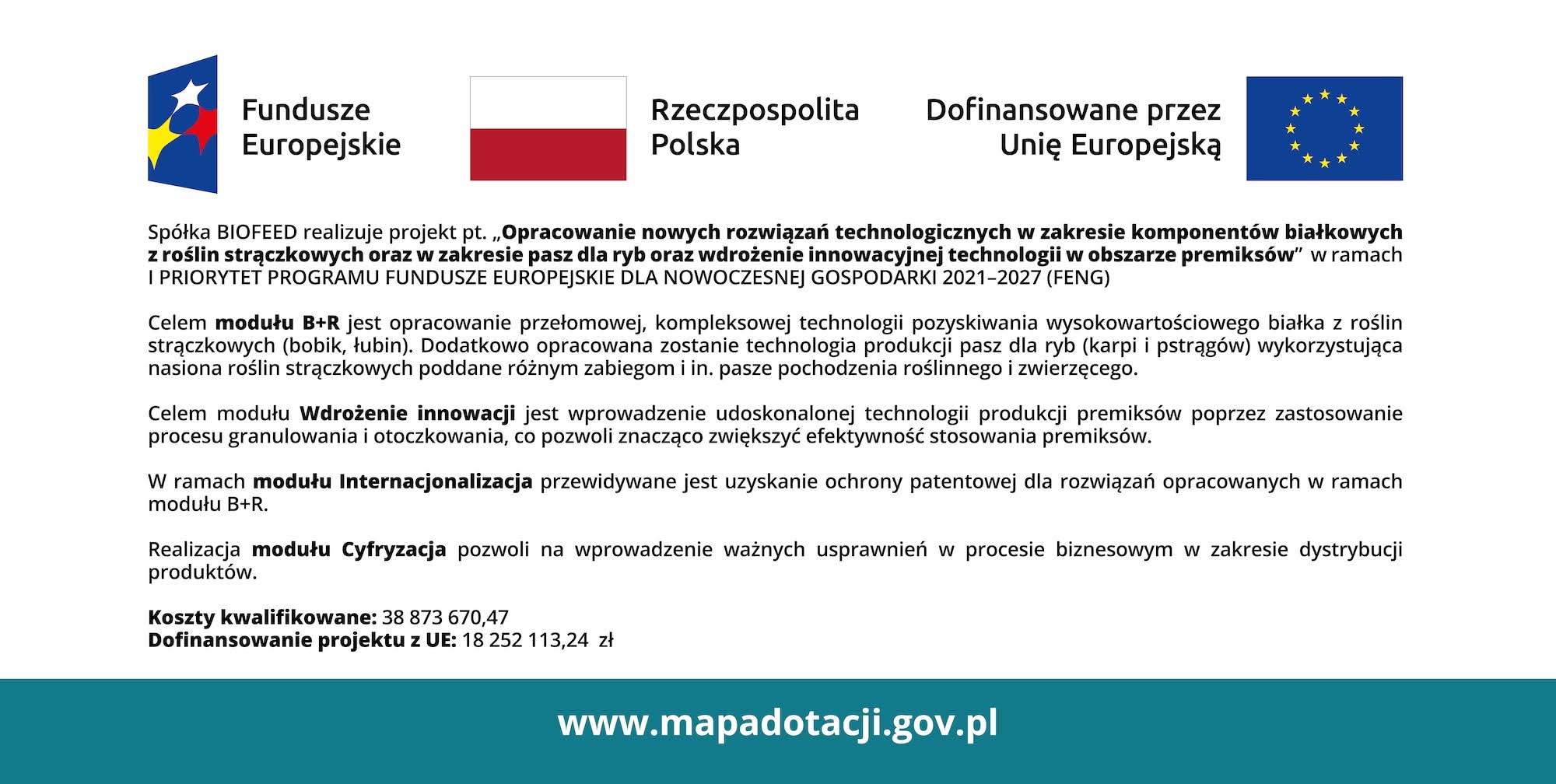 BIOFEED sp. z o.o. z siedzibą w Rajkowy, ul. Jesionowa 28, 83-130 Rajkowy, zarejestrowana w rejestrze przedsiębiorców przez Sąd Rejonowy Gdańsk-Północ w Gdańsku, VII Wydział Gospodarczy Krajowego Rejestru Sądowego pod nr KRS: 0000305450, NIP: 5932524603, REGON 220596376, BDO: 000079516, kapitał zakładowy 401 000 zł.
